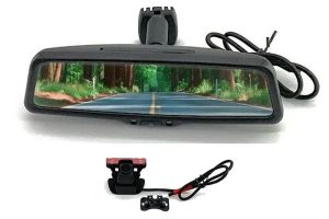 This mirror with a 9.66″ monitor comes with a 120-degree view rear camera and extension harnesses to route it to the vehicle’s rear.