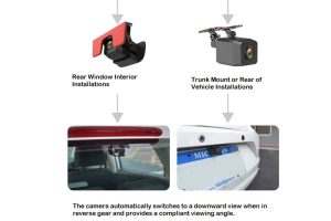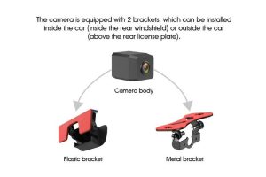 In addition, a 140-degree view DVR camera is built into this mirror monitor to record the vehicle’s front while the mirror monitor records the video from the included rear camera.