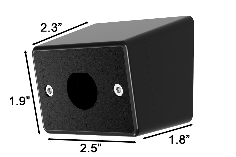 Locate the main housing at your preferred location and mark both screw holes and the large center hole. Drill two 1/8″ holes for the mounting screws and a single 3/4″ or 7/8″ hole for the factory connector and cable to pass through the body.