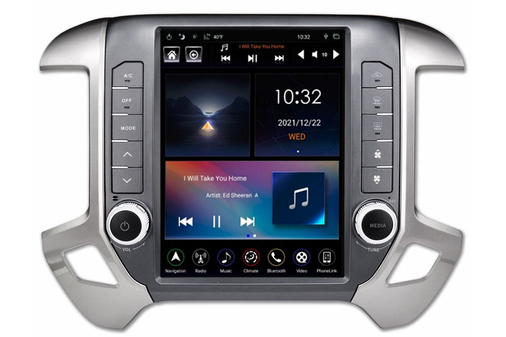 The Linkswell GEN5 T-Style multimedia center replaces the factory display screen and climate control center in select Chevrolet & GMC pickups, enhancing the dash with a 12.1-inch, multi-touch panel encased in a factory-match bezel. The climate controls are recreated on-screen, allowing the driver to access all related features.