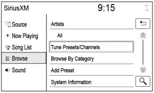 Quickly browse all your channels using your factory radio controls. You can conveniently browse by channels, category, or presets to find your favorite channels.