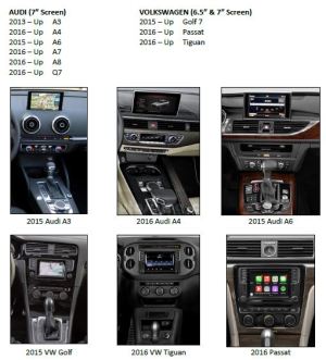 The CRUX VIMAD-84O activates the Video in-motion features in Audi and Volkswagen vehicles that are equipped with MIB1 and MIB2 Systems. It features time-saving activation via the OBD II port which does not require any removal of factory radio.